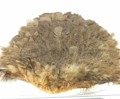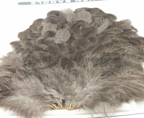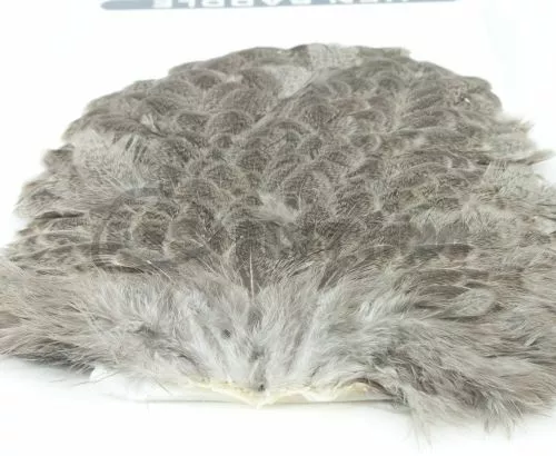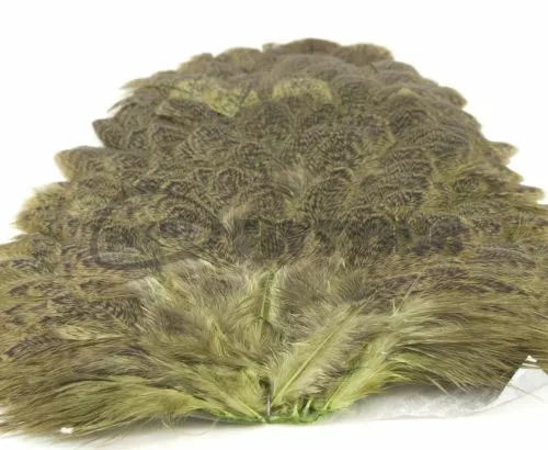 Beautiful Mottled pattern on these soft feathered hackle saddles. Stocked in five colours including: Natural Grey, Golden Brown, March Brown, Tan and Olive